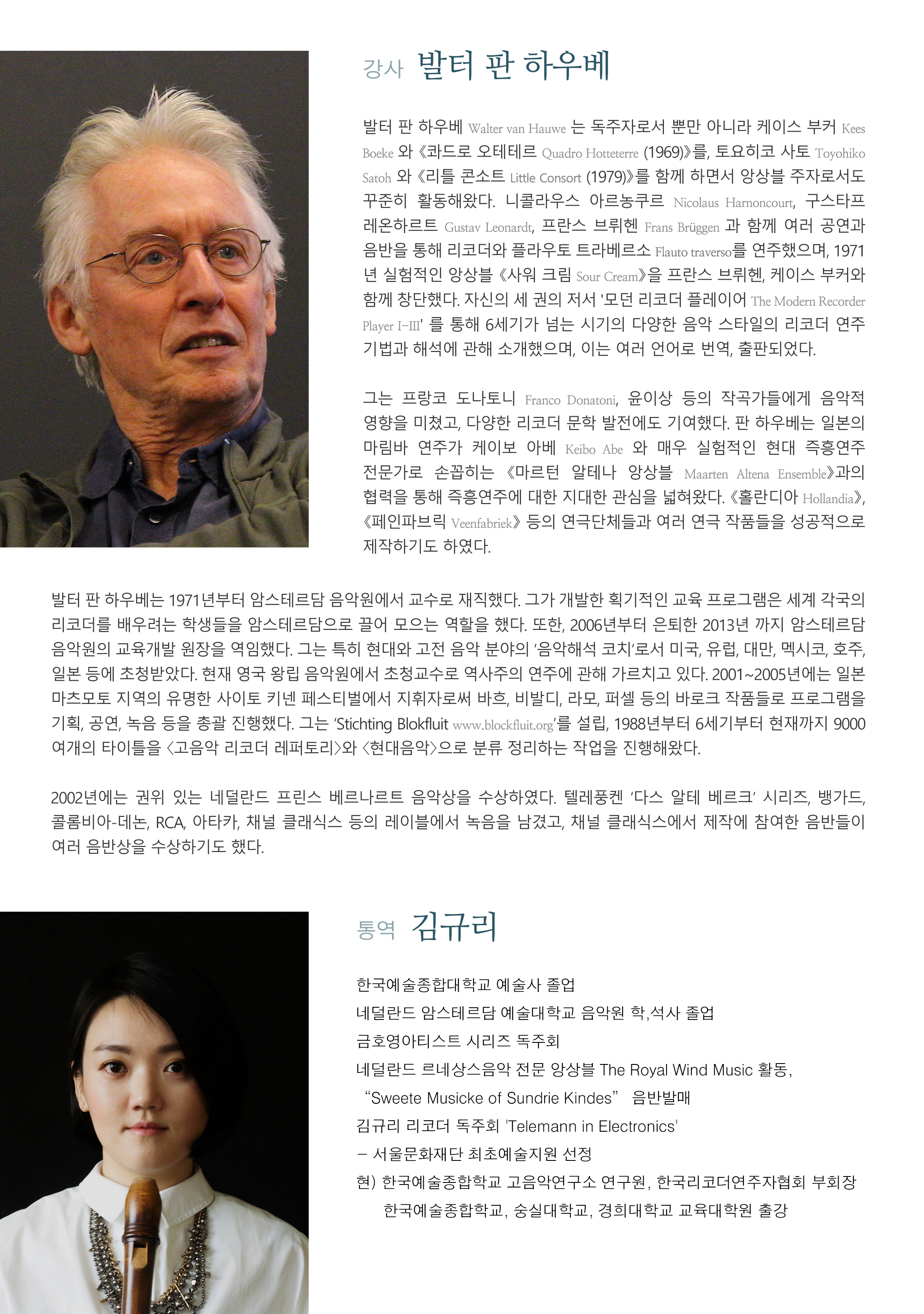 발터 판 하우베 특강 - The Professionalisation of The Recorder in Holland [2019/11/27 한국바로크악기] 본문