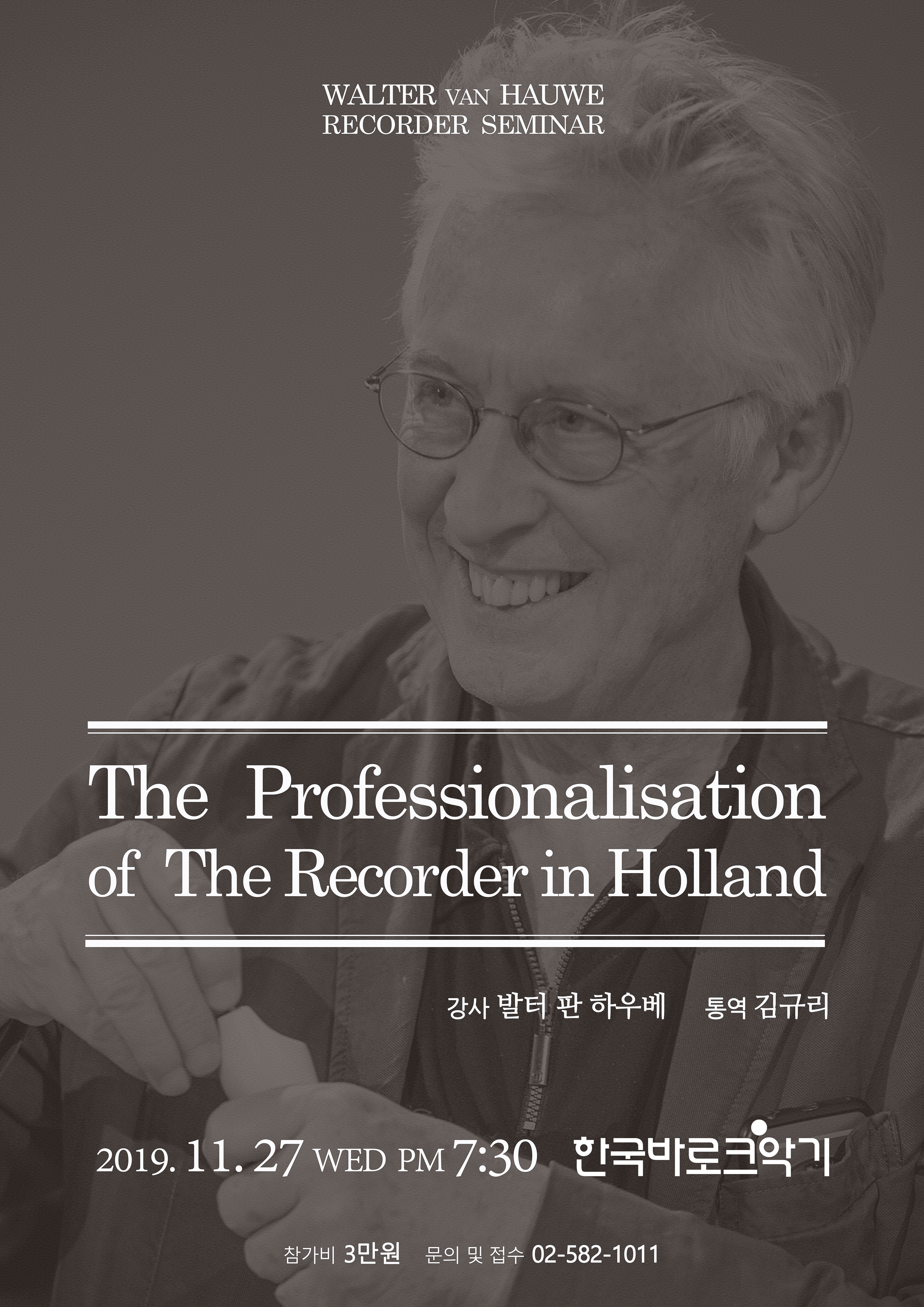발터 판 하우베 특강 - The Professionalisation of The Recorder in Holland [2019/11/27 한국바로크악기]