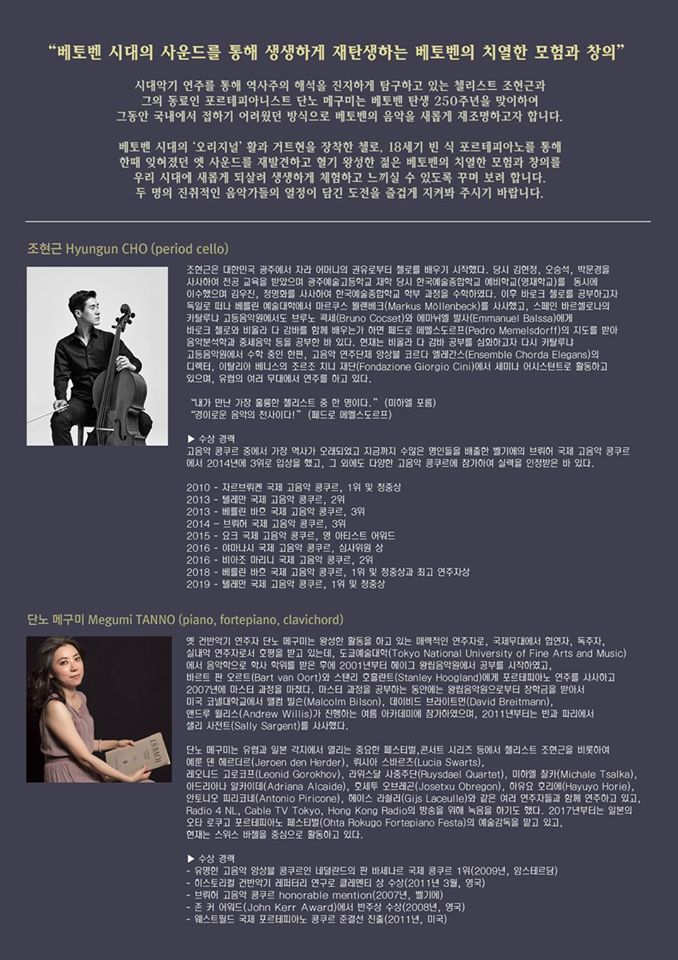 베토벤 시대의 첼로와 포르테피아노 듀오 연주회 [2020/03/08 국제아트홀] 본문
