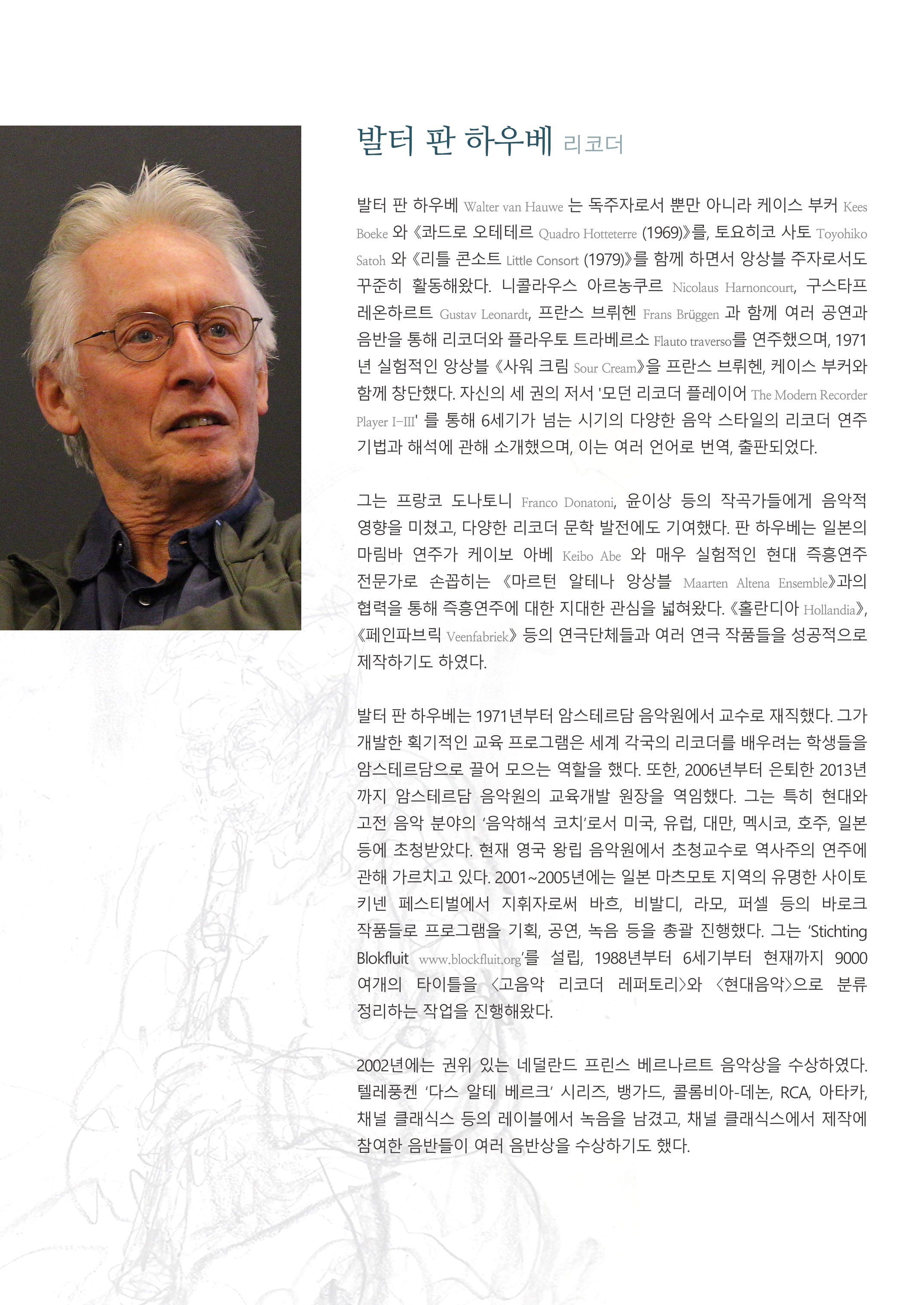 뉴스/공연 및 행사 발터 판 하우베 특강 - The Professionalisation of The Recorder in Holland [2019/11/27 한국바로크악기] 브뤼헨 (황금빛모서리) 2019. 11. 26. 16:59 저작자표시 비영리 변경금지 (새창열림)